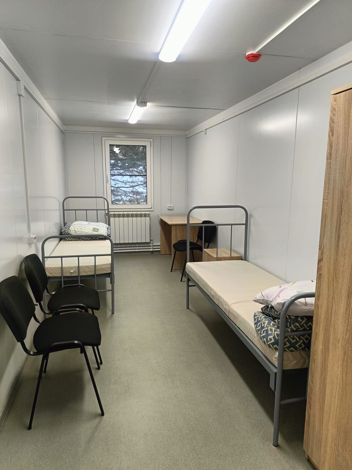 Здание комплектовалось системой водяного отопления с учетом ИТП, пожарной сигнализацией, СКУД, мебелью и бытовой техникой.